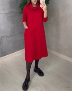 SPÉCIFICATIONS Style: Décontracté Matériel: Velours Type de la robe: Robe jambe droite Longueur de la robe: Longueur du genou Forme du col: Col roulé Type du dessin: Couleur pure Type de la manche: Manches régulières Longueur de la manche: Manches longues Détails: Poche Type d'ajustement: Habituel Saison: Automne,Hiver Occasion: Quotidien Con...