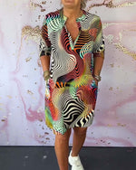 Robe à poches imprimée colorée avec col en V et demi-manches