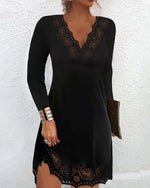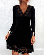 SPÉCIFICATIONS Style: Décontracté Matériel: Mélange de coton,Dentelle Type de la robe: A-Line Longueur de la robe: Au-dessus du genou Forme du col: Col en V Type du dessin: Couleur pure Type de la manche: Manches régulières Longueur de la manche: Manches longues Type d'ajustement: Habituel Saison: Automne,Hiver Occasion: Quotidien Contenu du c...