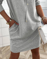 SPÉCIFICATIONS Style: Décontracté Matériel: Mélange de coton Type de la robe: A-Line Longueur de la robe: Longueur du genou Forme du col: Col rond Type du dessin: Point,Couleur pure Type de la manche: Manches régulières Longueur de la manche: Manches longues Détails: Couture de matériau,Poche Type d'ajustement: Habituel Saison: Automne,Hiver O...