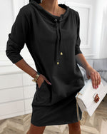 SPÉCIFICATIONS Style: Décontracté Matériel: Velours Type de la robe: Robe jambe droite Longueur de la robe: Longueur du genou Forme du col: Col roulé Type du dessin: Couleur pure Type de la manche: Manches régulières Longueur de la manche: Manches longues Détails: Poche Type d'ajustement: Habituel Saison: Automne,Hiver Occasion: Quotidien Con...