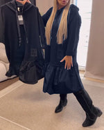 Robe Unie À Manches Longues Avec Détails Patchwork