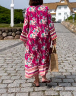 SPÉCIFICATIONS Style: Désirable Matériel: Mélange de coton Type de la robe: A-Line Longueur de la robe: Maxi Forme du col: Col en V Type du dessin: Impression Type de la manche: Manches bouffantes Longueur de la manche: Manches longues Détails: Lacet,Fente Type d'ajustement: Habituel Saison: Printemps,Automne Occasion: Quotidien Contenu du col...