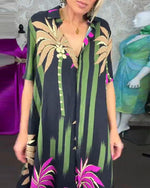 Robe ample décontractée à manches courtes et fente à imprimé feuilles