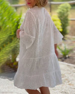 SPÉCIFICATIONS Style: Décontracté Matériel: Mélange de coton Type de la robe: A-Line Longueur de la robe: Au-dessus du genou Forme du col: Col en V Type du dessin: Paillettes,Couleur pure Type de la manche: Manches à volants Longueur de la manche: Manches longues Détails: Volants Type d'ajustement: Ample Saison: Automne,Hiver Occasion: Quotidi...
