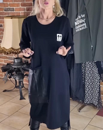 Robe Unie À Manches Longues Avec Détails Patchwork