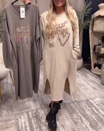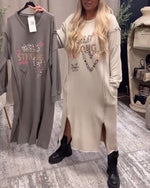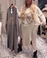 SPÉCIFICATIONS Style: Décontracté Matériel: Mélange de coton Type de la robe: Robe jambe droite Longueur de la robe: Longueur du genou Forme du col: Col en V Type de la manche: Manches régulières Longueur de la manche: Manches longues Détails: Forage à chaud Type d'ajustement: Habituel Saison: Automne,Hiver Occasion: Quotidien Contenu du colis...