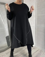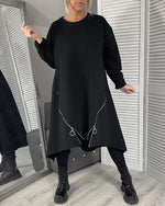 Robe Unie À Manches Longues Avec Détails Patchwork