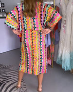 SPÉCIFICATIONS Style: Décontracté Matériel: Mélange de coton Type de la robe: A-Line Longueur de la robe: Midi Forme du col: Col à revers Type du dessin: Impression Type de la manche: Manches régulières Longueur de la manche: Manches neuf points Type d'ajustement: Habituel Saison: Printemps,Été Occasion: Quotidien Contenu du colis: 1 x Robe TA...