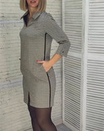 SPÉCIFICATIONS Style: Décontracté Matériel: Mélange de coton Type de la robe: Robe jambe droite Longueur de la robe: Au-dessus du genou Forme du col: Col à revers Type du dessin: Couleur pure Type de la manche: Manches régulières Longueur de la manche: Manches longues Type d'ajustement: Habituel Saison: Automne,Hiver Occasion: Quotidien Conten...