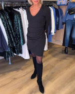 SPÉCIFICATIONS Style: Décontracté Matériel: Mélange de coton Type de la robe: Robe moulante Longueur de la robe: Au-dessus du genou Forme du col: Col Drapé Type du dessin: Paillettes,Couleur pure Type de la manche: Manches régulières Longueur de la manche: Manches longues Type d'ajustement: Habituel Saison: Automne,Hiver Occasion: Vacance Cont...