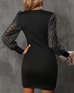 SPÉCIFICATIONS Style: Chic Matériel: Dentelle,Tricotage Type de la robe: A-Line Longueur de la robe: Au-dessus du genou Forme du col: Col rond Type de la manche: Manches bouffantes Longueur de la manche: Manches longues Détails: Couture de matériau,Creusé Type d'ajustement: Habituel Saison: Automne,Hiver Occasion: Quotidien Contenu du colis: 1...