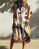 SPÉCIFICATIONS Style: Décontracté Matériel: Mélange de coton Type de la robe: A-Line Longueur de la robe: Midi Forme du col: Col à revers Type du dessin: Impression Type de la manche: Manches régulières Longueur de la manche: Manches neuf points Type d'ajustement: Habituel Saison: Printemps,Été Occasion: Quotidien Contenu du colis: 1 x Robe TA...