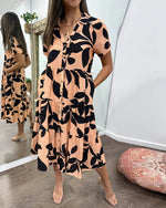 SPÉCIFICATIONS Style: Décontracté Matériel: Mélange de coton Type de la robe: A-Line Longueur de la robe: Midi Forme du col: Col à revers Type du dessin: Impression Type de la manche: Manches régulières Longueur de la manche: Manches neuf points Type d'ajustement: Habituel Saison: Printemps,Été Occasion: Quotidien Contenu du colis: 1 x Robe TA...