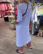 Robe boutonnée à revers et imprimé rayé