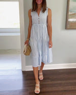 Robe boutonnée sans manches à imprimé fines rayures