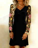 Robe Col Rond Manches Longues À Paillettes Patchwork
