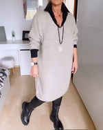 SPÉCIFICATIONS Style: Décontracté Matériel: Mélange de coton Type de la robe: Robe jambe droite Longueur de la robe: Longueur du genou Forme du col: Col en V Type de la manche: Manches régulières Longueur de la manche: Manches longues Détails: Forage à chaud Type d'ajustement: Habituel Saison: Automne,Hiver Occasion: Quotidien Contenu du colis...