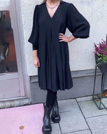 SPÉCIFICATIONS Style: Élégant,Faire la fête Matériel: Mélange de coton,Gaze Type de la robe: Robe jambe droite Longueur de la robe: Longueur du genou Forme du col: Col en V Type du dessin: Point Type de la manche: Manches bouffantes Longueur de la manche: Manches neuf points Détails: Couture de matériau,Poche Type d'ajustement: Habituel Saison...
