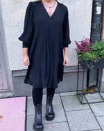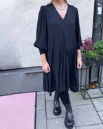 Robe Unie À Manches Longues Avec Détails Patchwork