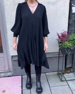 Robe Élégante À Manches Ballon Et Détails Patchwork
