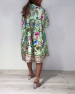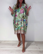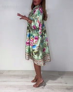 SPÉCIFICATIONS Style: Décontracté Matériel: Mélange de coton Type de la robe: A-Line Longueur de la robe: Midi Forme du col: Col à revers Type du dessin: Impression Type de la manche: Manches régulières Longueur de la manche: Manches neuf points Type d'ajustement: Habituel Saison: Printemps,Été Occasion: Quotidien Contenu du colis: 1 x Robe TA...