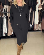 Robe décontractée à col rond couleur unie