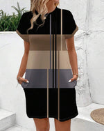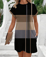SPÉCIFICATIONS Style: Décontracté Matériel: Mélange de coton Type de la robe: A-Line Longueur de la robe: Au-dessus du genou Forme du col: Col rond Type de la manche: Manches régulières Longueur de la manche: Manches courtes Détails: Couture de matériau Type d'ajustement: Habituel Saison: Printemps,Automne,Hiver Occasion: Quotidien Contenu du ...