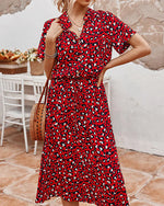 SPÉCIFICATIONS Style: Décontracté Matériel: Mélange de coton Type de la robe: A-Line Longueur de la robe: Midi Forme du col: Col à revers Type du dessin: Impression Type de la manche: Manches régulières Longueur de la manche: Manches neuf points Type d'ajustement: Habituel Saison: Printemps,Été Occasion: Quotidien Contenu du colis: 1 x Robe TA...