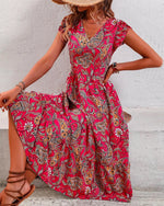 SPÉCIFICATIONS Style: Désirable Matériel: Mélange de coton Type de la robe: A-Line Longueur de la robe: Maxi Forme du col: Col en V Type du dessin: Impression Type de la manche: Manches bouffantes Longueur de la manche: Manches longues Détails: Lacet,Fente Type d'ajustement: Habituel Saison: Printemps,Automne Occasion: Quotidien Contenu du col...