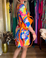 Robe Col Rond Manches Longues À Paillettes Patchwork