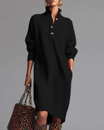 SPÉCIFICATIONS Style: Décontracté Matériel: Mélange de coton,Gaze Type de la robe: A-Line Longueur de la robe: Au-dessus du genou Forme du col: Col rond Type du dessin: Couleur pure Type de la manche: Manches régulières Longueur de la manche: Manches longues Détails: Boutons Type d'ajustement: Habituel Saison: Automne,Hiver Occasion: Quotidien...