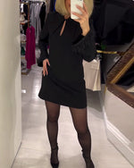 Robe Unie À Manches Longues Avec Détails Patchwork