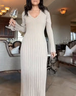 SPÉCIFICATIONS Style: Décontracté Matériel: Mélange de coton Type de la robe: Robe jambe droite Longueur de la robe: Midi Forme du col: Col en V Type du dessin: Paillettes,Couleur pure Type de la manche: Manches régulières Longueur de la manche: Manches longues Type d'ajustement: Habituel Saison: Automne,Hiver Occasion: Quotidien Contenu du co...