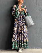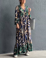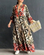 SPÉCIFICATIONS Style: Désirable Matériel: Mélange de coton Type de la robe: A-Line Longueur de la robe: Maxi Forme du col: Col en V Type du dessin: Impression Type de la manche: Manches bouffantes Longueur de la manche: Manches longues Détails: Lacet,Fente Type d'ajustement: Habituel Saison: Printemps,Automne Occasion: Quotidien Contenu du col...