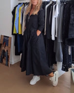 SPÉCIFICATIONS Style: Décontracté Matériel: Mélange de coton Type de la robe: Robe jambe droite Longueur de la robe: Maxi Forme du col: Col en V Type du dessin: Impression Longueur de la manche: Manches 3/4 Détails: Poche,Froncé Type d'ajustement: Habituel Saison: Printemps,Automne,Hiver Occasion: Quotidien Contenu du colis: 1 x Robe TABLEAU D...