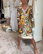 Robe décontractée à col en V et imprimé rétro