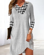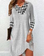 Robe Manches Longues À Patchwork Et Pied-De-Poule