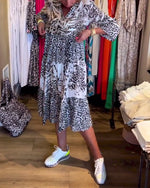 Robe décontractée à imprimé léopard et manches 3/4