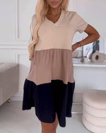 SPÉCIFICATIONS Style: Décontracté Matériel: Mélange de coton Type de la robe: A-Line Longueur de la robe: Au-dessus du genou Forme du col: Col rond Type de la manche: Manches régulières Longueur de la manche: Manches courtes Détails: Couture de matériau Type d'ajustement: Habituel Saison: Printemps,Automne,Hiver Occasion: Quotidien Contenu du ...