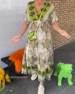 SPÉCIFICATIONS Style: Décontracté Matériel: Mélange de coton Type de la robe: Robe jambe droite Longueur de la robe: Maxi Forme du col: Col en V Type du dessin: Impression Longueur de la manche: Manches 3/4 Détails: Poche,Froncé Type d'ajustement: Habituel Saison: Printemps,Automne,Hiver Occasion: Quotidien Contenu du colis: 1 x Robe TABLEAU D...