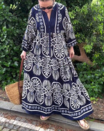 SPÉCIFICATIONS Style: Décontracté Matériel: Mélange de coton,Dentelle Type de la robe: Robe jambe droite Longueur de la robe: Maxi Forme du col: Col en V Type du dessin: Couleur pure Type de la manche: Manches évasées Longueur de la manche: Manches 3/4 Détails: Couture de matériau,Poche,Froncé Type d'ajustement: Habituel Saison: Printemps,Auto...