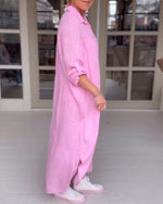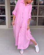 SPÉCIFICATIONS Style: Décontracté Matériel: Mélange de coton Type de la robe: Robe jambe droite Longueur de la robe: Midi Forme du col: Col à revers Type du dessin: Couleur pure Type de la manche: Manches régulières Longueur de la manche: Manches longues Détails: Couture de matériau,Boutons Type d'ajustement: Habituel Saison: Automne,Hiver Occ...