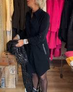 SPÉCIFICATIONS Style: Décontracté Matériel: Mélange de coton Type de la robe: Robe jambe droite Longueur de la robe: Au-dessus du genou Forme du col: Col à revers Type du dessin: Couleur pure Type de la manche: Manches à gigot Longueur de la manche: Manches longues Détails: Frange,Fermeture éclair Type d'ajustement: Habituel Saison: Automne,Hi...