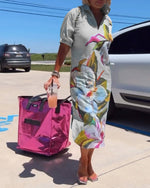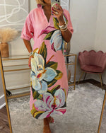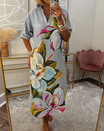 SPÉCIFICATIONS Style: Décontracté Matériel: Mélange de coton Type de la robe: A-Line Longueur de la robe: Midi Forme du col: Col à revers Type du dessin: Impression Type de la manche: Manches régulières Longueur de la manche: Manches neuf points Type d'ajustement: Habituel Saison: Printemps,Été Occasion: Quotidien Contenu du colis: 1 x Robe TA...