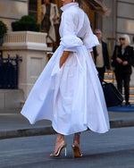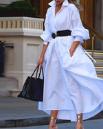 SPÉCIFICATIONS Style: Décontracté Matériel: Mélange de coton Type de la robe: Robe jambe droite Longueur de la robe: Midi Forme du col: Col à revers Type du dessin: Couleur pure Type de la manche: Manches régulières Longueur de la manche: Manches longues Détails: Couture de matériau,Boutons Type d'ajustement: Habituel Saison: Automne,Hiver Occ...