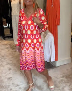 SPÉCIFICATIONS Style: Élégant, Faire la fête Matériel: Fibre polyester Type de la robe: A-Line Longueur de la robe: Longueur du genou Forme du col: Col en V Type du dessin: Impression Type de la manche: Manches régulières Longueur de la manche: Manches longues Type d'ajustement: Habituel Saison: Printemps, Automne, Hiver Occasion: Quotidien,...