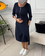 Robe décontractée de couleur unie avec poche zippée et col ras du cou
