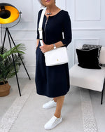 Robe décontractée à col rond couleur unie