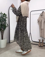 SPÉCIFICATIONS Style: Désirable Matériel: Mélange de coton Type de la robe: A-Line Longueur de la robe: Maxi Forme du col: Col en V Type du dessin: Impression Type de la manche: Manches bouffantes Longueur de la manche: Manches longues Détails: Lacet,Fente Type d'ajustement: Habituel Saison: Printemps,Automne Occasion: Quotidien Contenu du col...